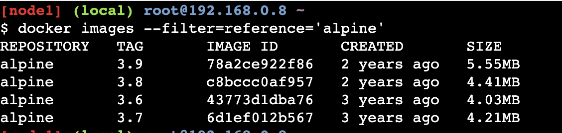 The [REPOSITORY[:TAG]] value must be an “exact match”.