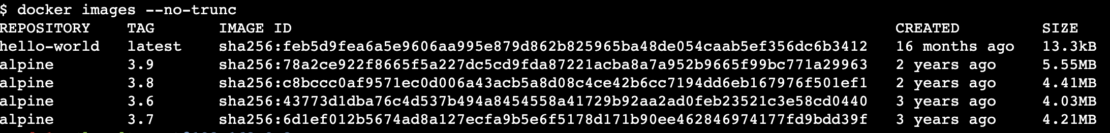 The docker images command takes an optional [REPOSITORY[:TAG]] argument that restricts the list to images that match the argument. If you specify REPOSITORY but no TAG, the docker images command lists all images in the given repository.